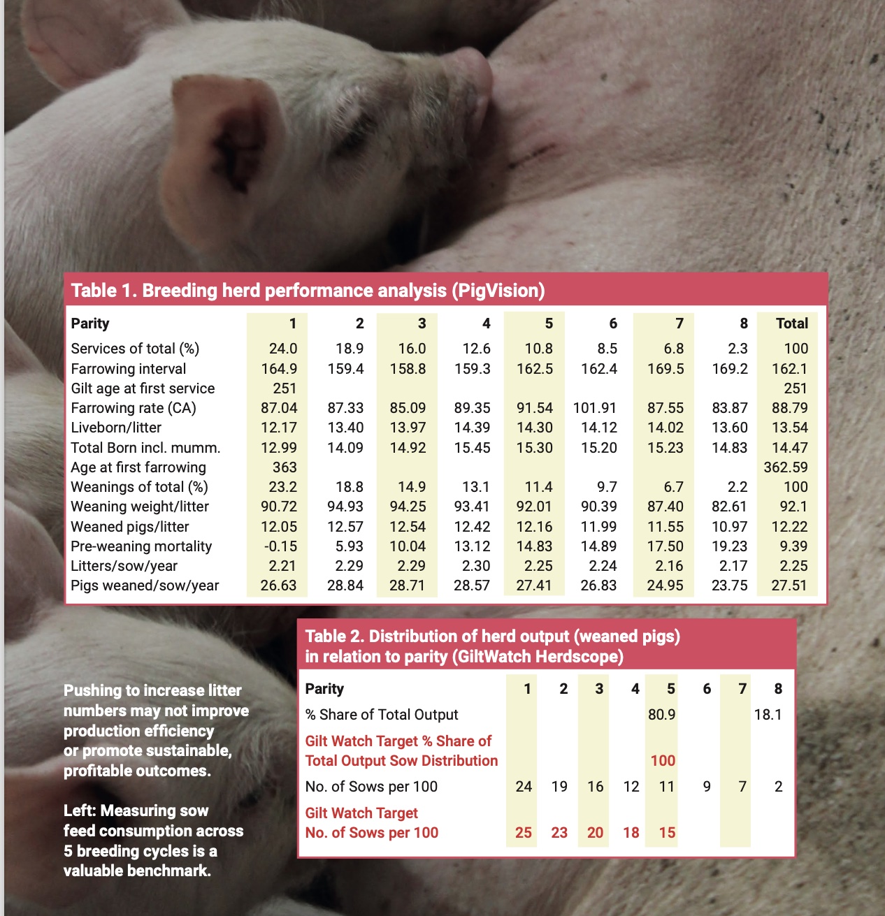 GiltWatchTogether recommends a sow retention rate towards 85% at parity five, which is ambitious, but evidence suggests anything lower compromises a herd's input-output balance.